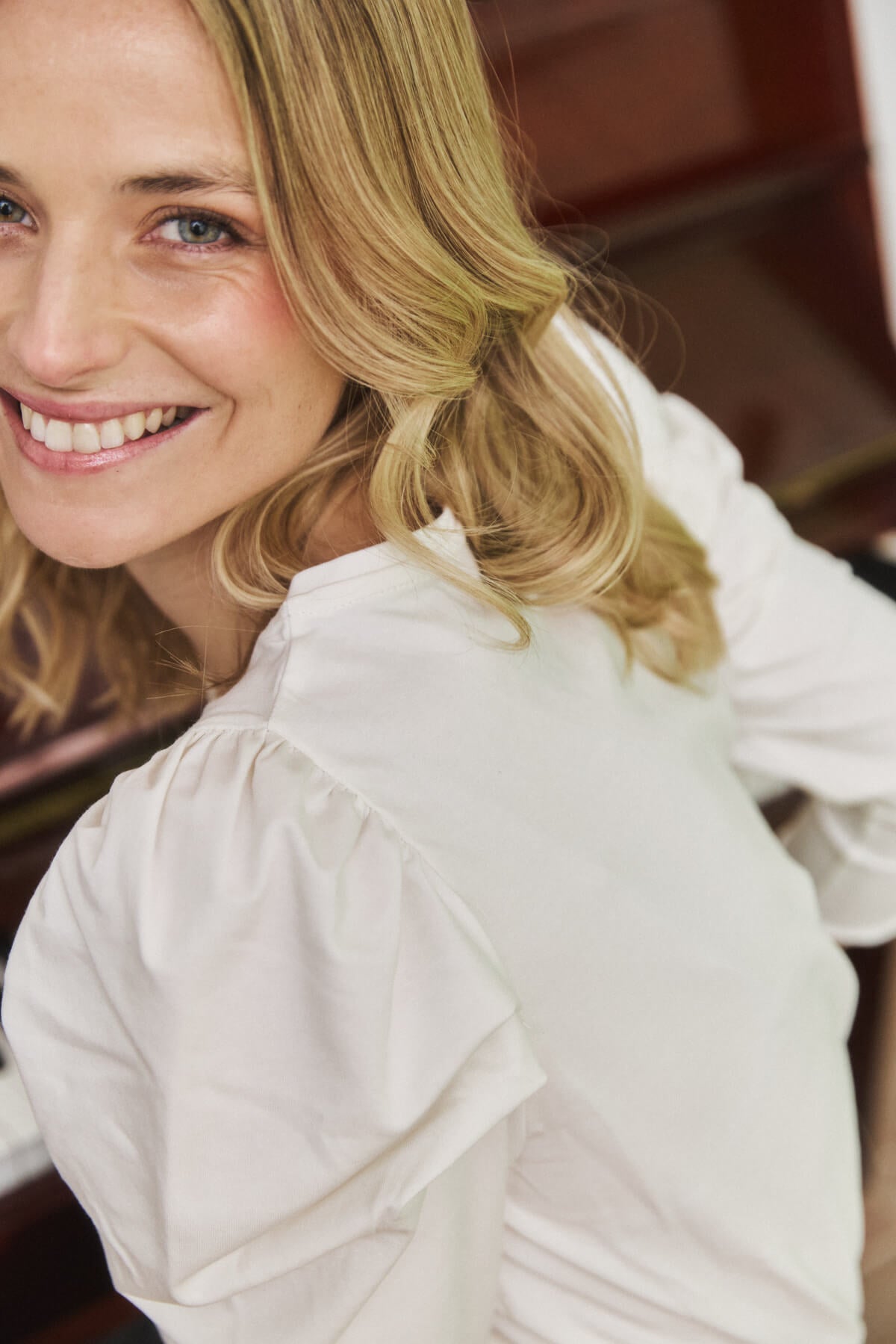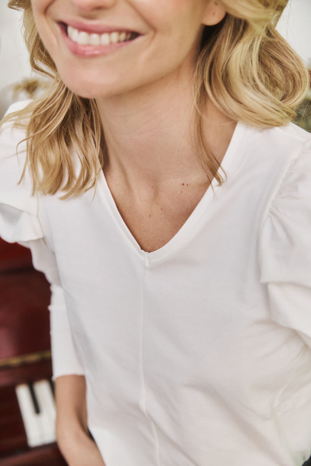 Esta camiseta es de esas que elevan cualquier look sin complicarlo. Su diseño combina una silueta sencilla con un detalle especial en los hombros que aporta presencia y hace que no pase desapercibida.