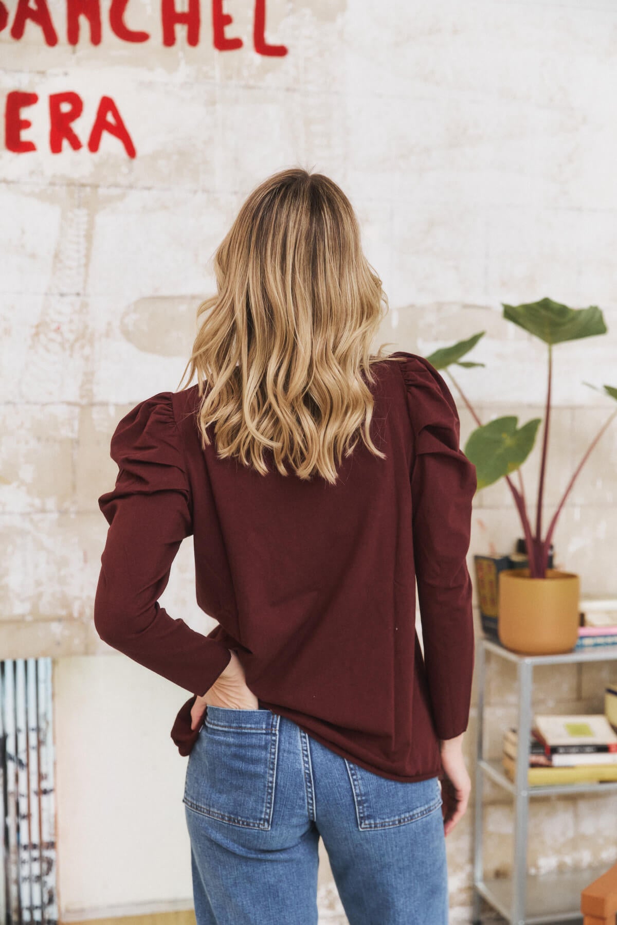 Esta camiseta destaca por su diseño cuidado y esos pequeños detalles que elevan cualquier look. El volumen sutil en los hombros aporta estructura y un aire especial, sin perder comodidad ni naturalidad.