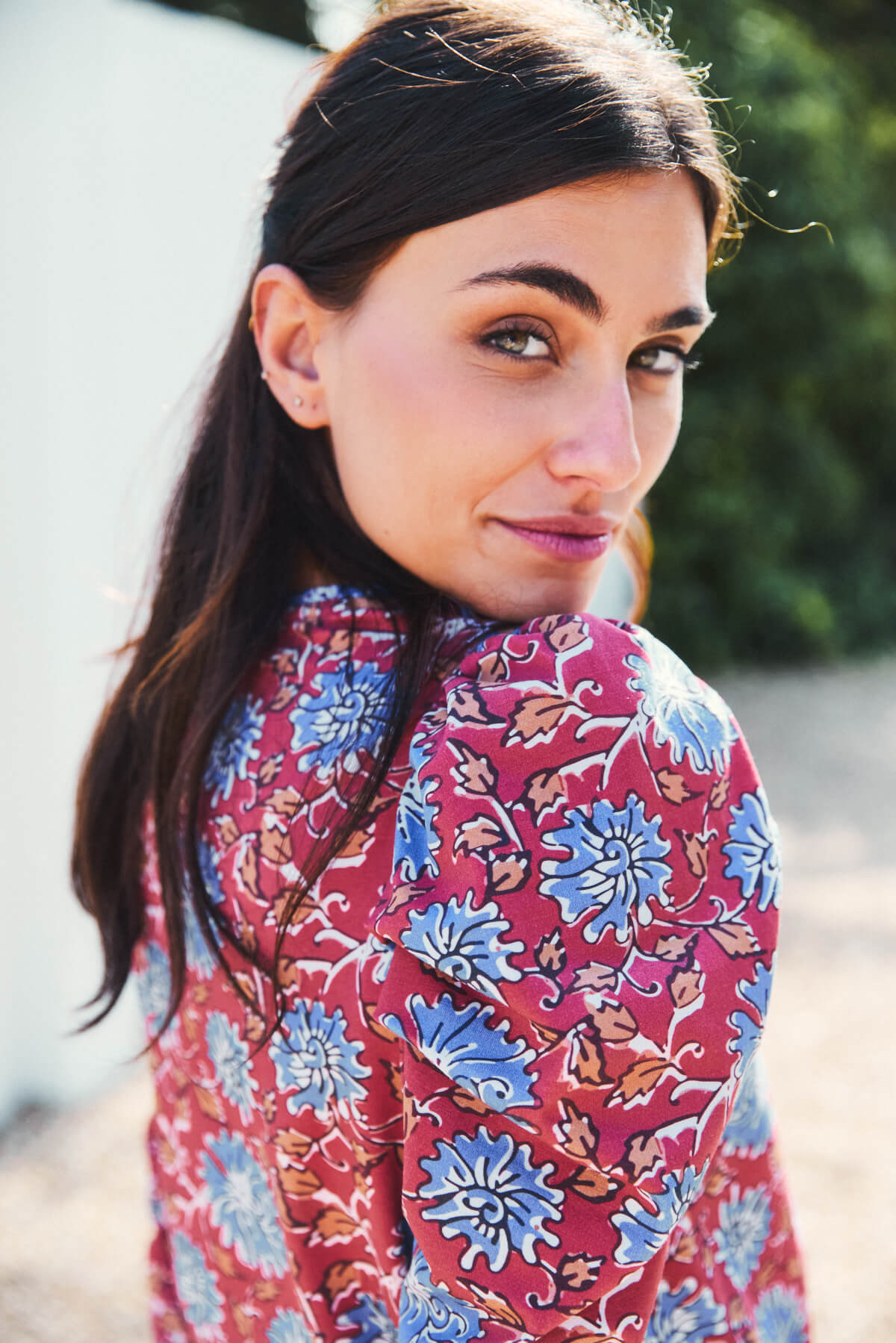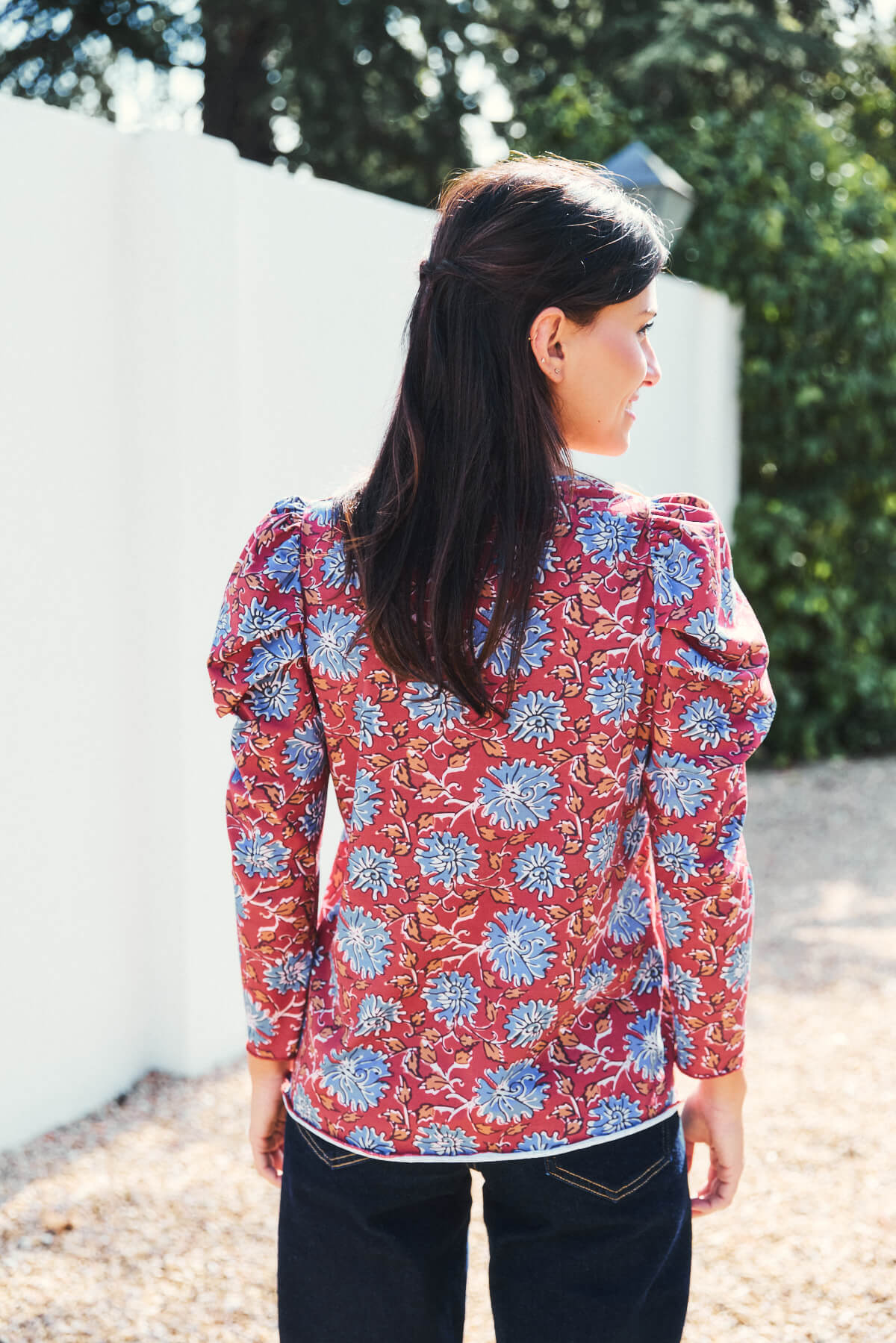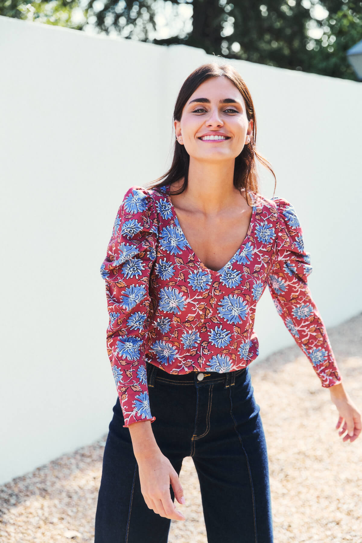 Su diseño con escote en pico y mangas ligeramente abullonadas consigue un equilibrio perfecto entre lo femenino y lo actual.
