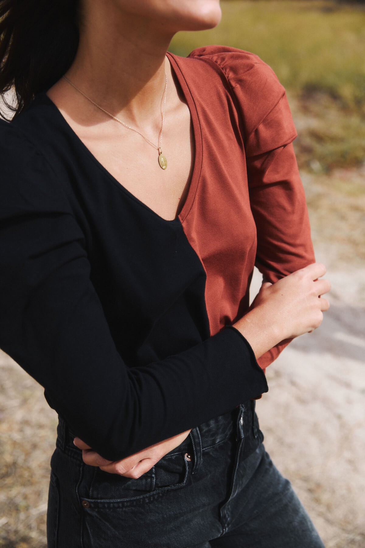 El tejido es suave, fluido y con el cuerpo justo para mantener la forma sin perder comodidad.