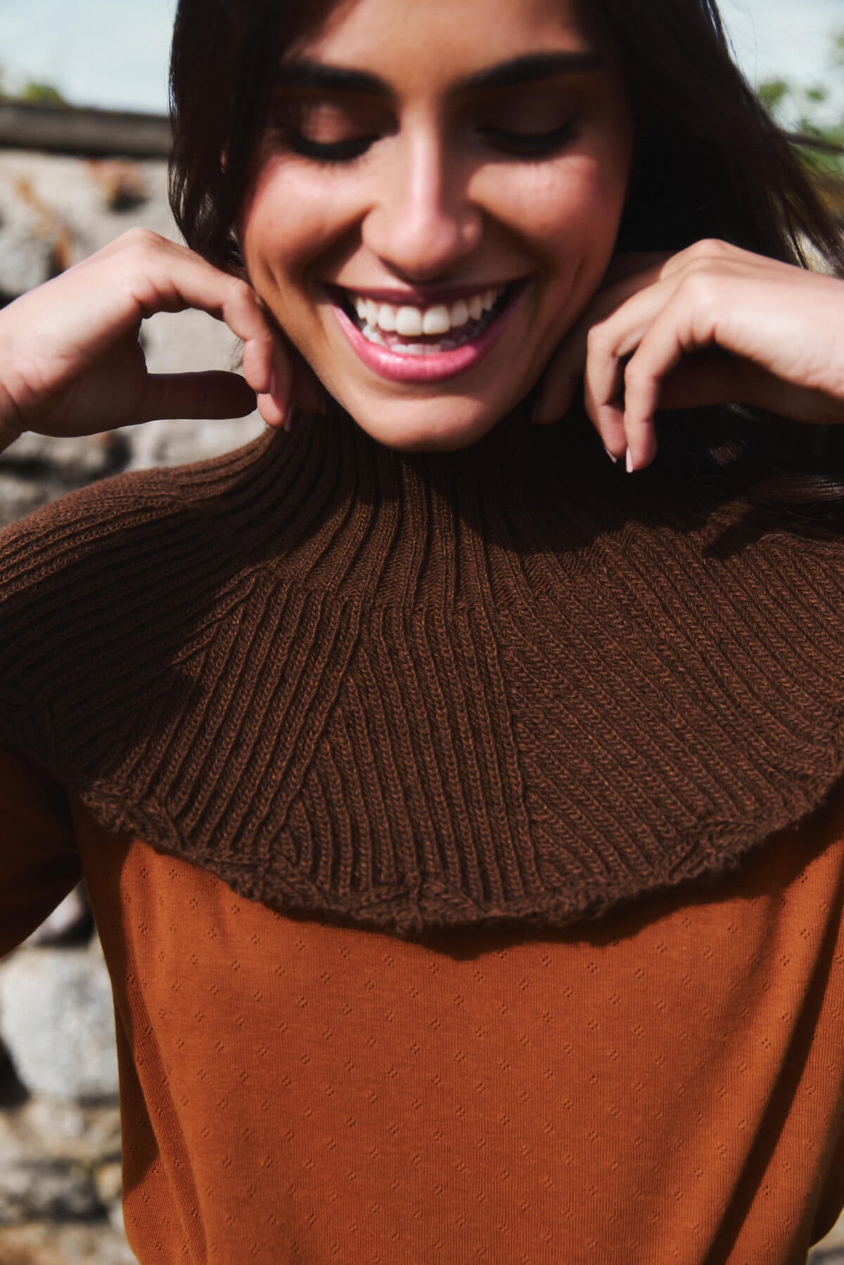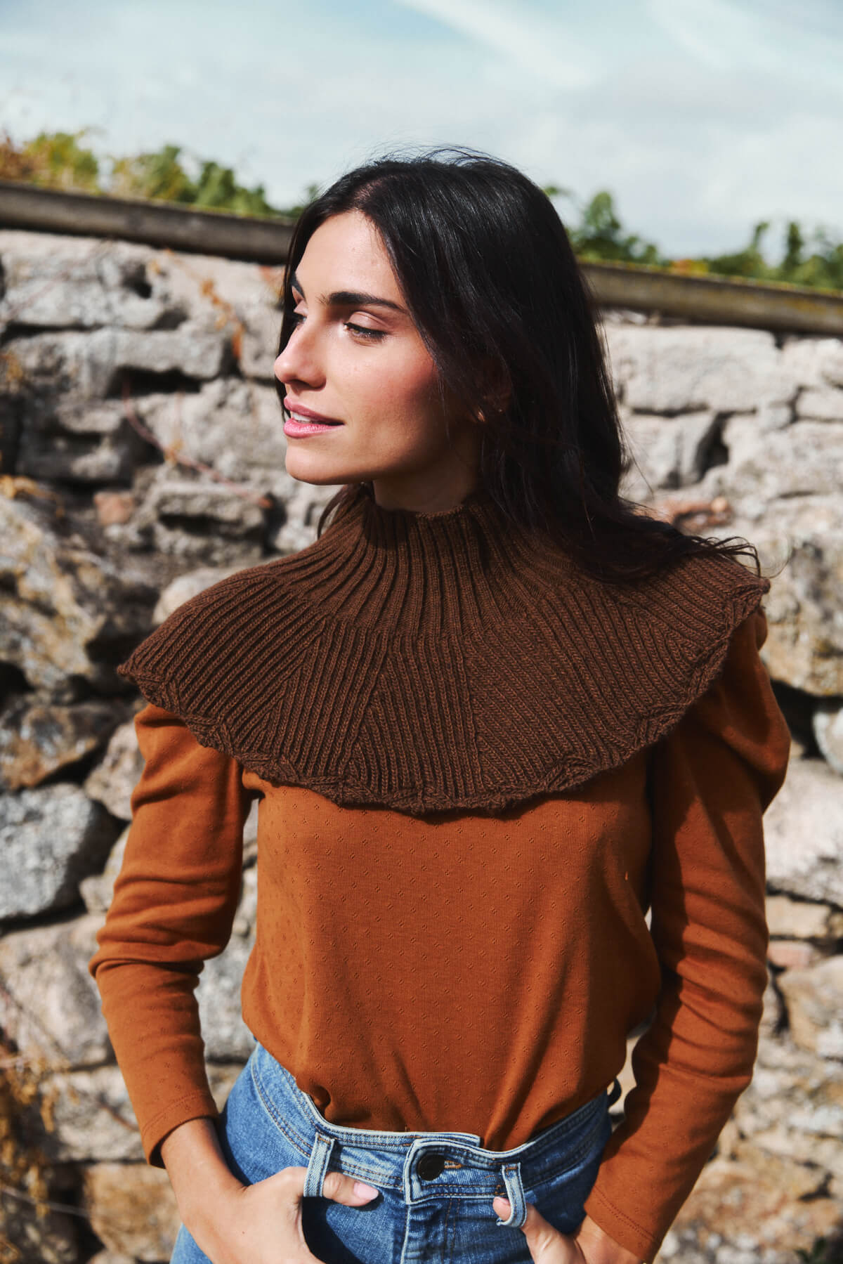 Este cuello de lana es ese complemento que transforma cualquier look en segundos. Su diseño envolvente aporta calidez y un punto especial, pensado para llevarlo sobre camisetas, vestidos o prendas más ligeras cuando bajan las temperaturas.